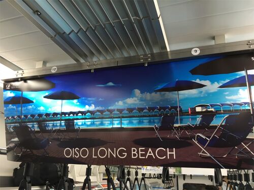 大磯ロングビーチ 中づり広告(ワイド)@JR東海道線 すんごいオシャレに作ってあります。海外のバリ島とかみたいですね。プールの広告と言えば、ビキニの女子集団が楽しげな表情を浮かべてイェーイ!みたいなポーズとって、後ろに波プールかウォータースライ…