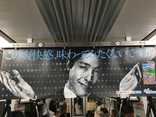 ぷよぷよ‼︎クエスト「この爽快感、味わってみたくないですか。」中づりワイド スマホゲーム「ぷよぷよ‼︎クエスト」の交通広告。中田敦彦さんを起用しPERFECT HUMAN(?)っぽく語りかけてくるこの広告のキャッチコピーは「この爽快感、味わってみたくないで…