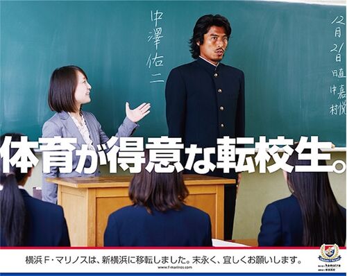 横浜F・マリノス 拠点 新横浜移転時 中澤選手ポスター 画像元:http://sp.f-marinos.com/news/detail/2015-12-25/100000/172648: 昨年、横浜F・マリノスが拠点をみなとみらいから新横浜に移転したことを契機に行われた展開。主力の中澤選手を起用して、移転し…