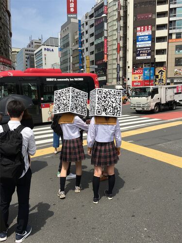 QRコード女子高生@渋谷 文字通りQRコードの箱をかぶっているだけの女子高生。撮影したのは5月の中旬ですね。渋谷を回遊しておりました。もちろんプロモーションの一環であろうと思われます。 で、QRコードの行き着く先には何があるのかって見てなかったんで…