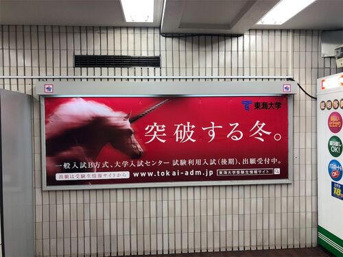 東海大学「突破する冬。」駅貼りポスター B0サイズでいろんな駅に貼られている本ポスター。撮影したのは確か町田駅。 しかしコピーが「突破する冬。」って。 なんで大学側が入学試験仕掛けてきてるくせに突破されようとしてるんですかね? ふるいにかけたく…