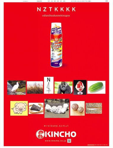 キンチョー 謎解き広告 2019年6月17日日本経済新聞朝刊 なにやらリアル脱出ゲームの謎みたいですね。 難しすぎてわたしは途中で断念しました。 公式サイトにヒントがあります。 http://www.kincho.co.jp/cm/ad_paper/index.html わかった人は教えてください